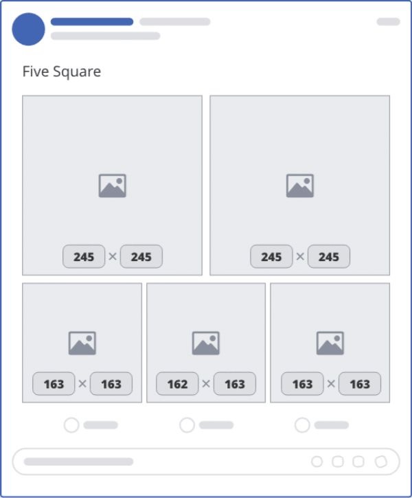 - 5 hình vuông: 245px x 245px (hai hình trên), 163px x 163px (2 hình dưới bên trái/phải), 162px by 163px (1 hình dưới, chính giữa)